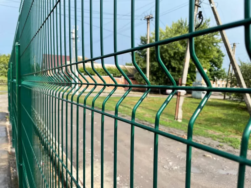 Сварные сетчатые заборы для торговых центров отличает жесткость конструкции за счет наличия от 2-х до 4-х V-образных в 100 мм изгибов по высоте секции и номинального диаметра прутка из металла. Экспериментально доказано, что гиб в 100 мм, придает конструкции большую прочность в отличие большего размера – 160 мм.